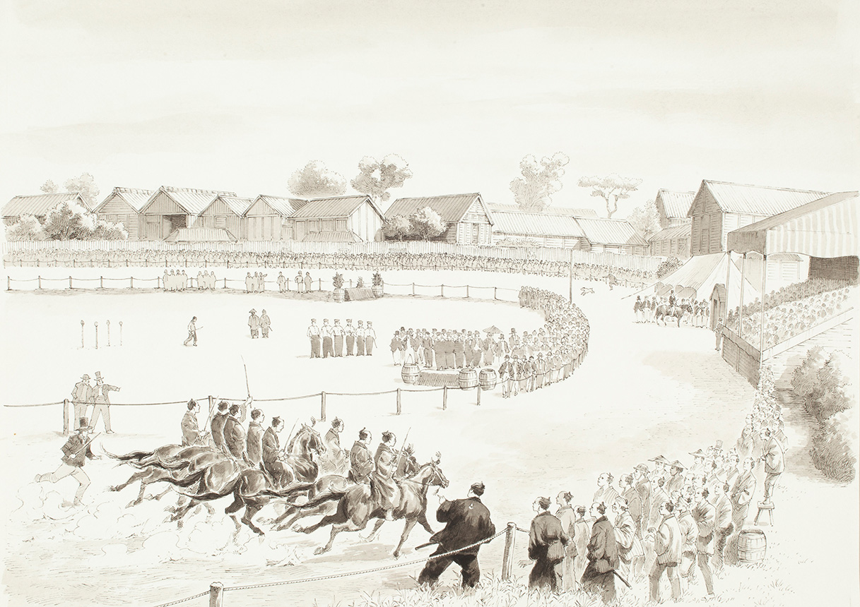 馬の博物館のホームページにて連載中の『優駿の門ROOTS』1話~12話の原画の一部を展示替えをしながらご紹介いたします。